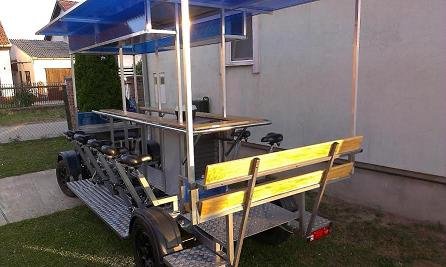A 15-persons bike for Picnic-events, conference bar bike , Party bike bus, beer bike, bier bike, pedal tavern, cycle pub, pedaler pub, trolley pub, pub crawler, pedal pub …